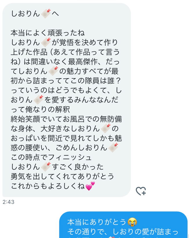 しおりが頑張れてるのも、こうやって応援してくれるおかげです✨