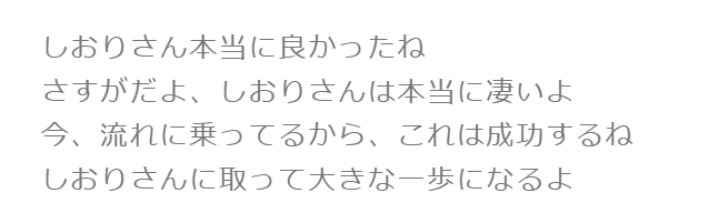 今の、しおりさんは流れに乗ってるから本当に大成功するよ