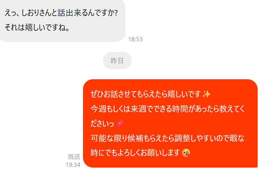 ぜひぜひ、お話ししたいので検討よろしくお願いします♡